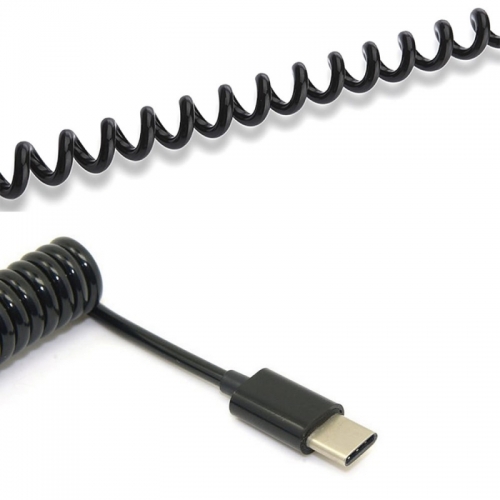 • Gekrulde zwarte USB-C naar USB-C kabel
